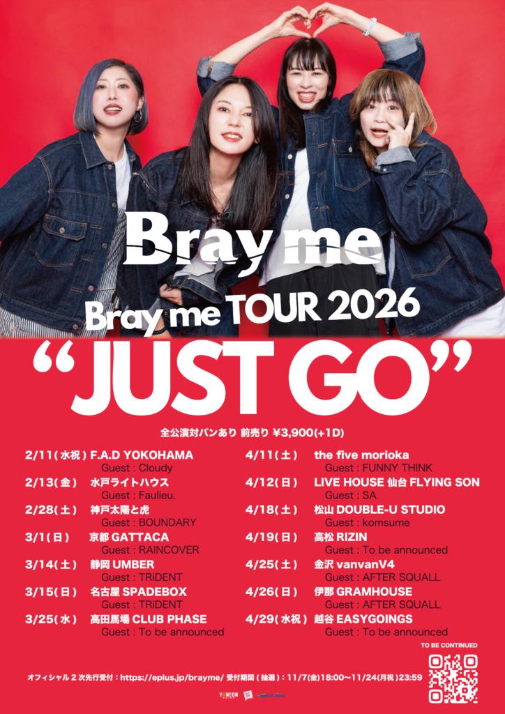 Bray me【TOUR 2026 “JUST GO”】仙台公演に出演いたします。