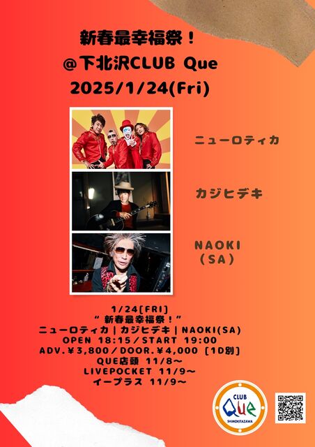2025.01.24Fri 下北沢CLUB Que “新春最幸福祭!” OPEN 18:15 START 19:00ADV 3800yen DOOR 4000yen + drink order LivePocket [https://t.livepocket.jp/e/ que20250124] イープラス [https://eplus.jp/sf/detail/4219040001-P0030001]