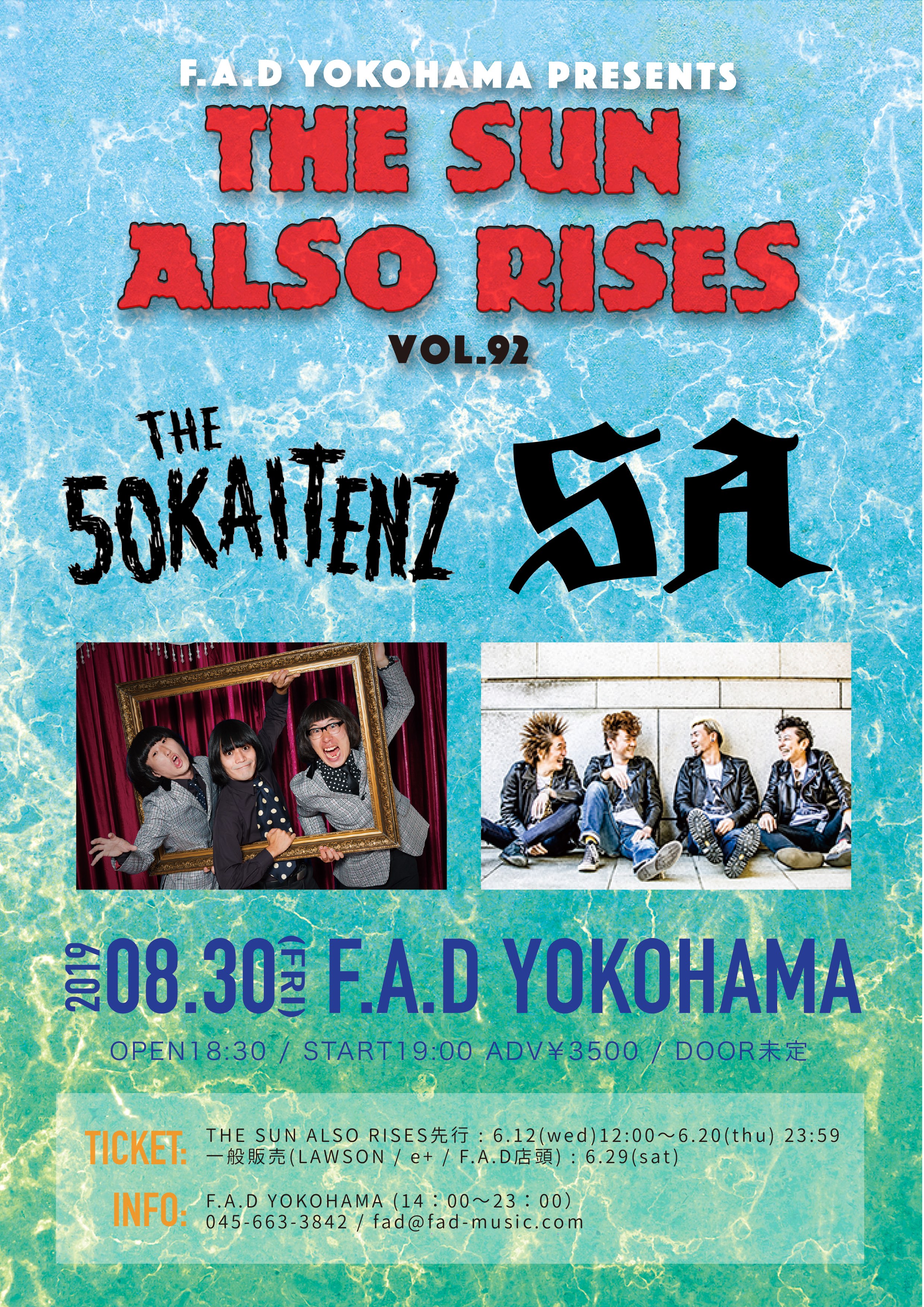THE SUN ALSO RISESオフィシャル先行→プレイガイド並列(ローチケ , e+,F.A.D店頭)→当日券(未定)